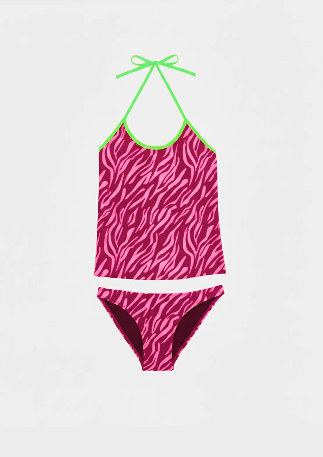 - Estampado cebra fucsia con contrastes en amarillo flúor